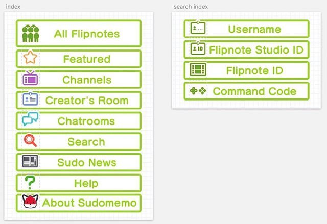 検索機能はユーザーネーム検索、うごメモID検索、作品ID検索、コマンド検索があります。